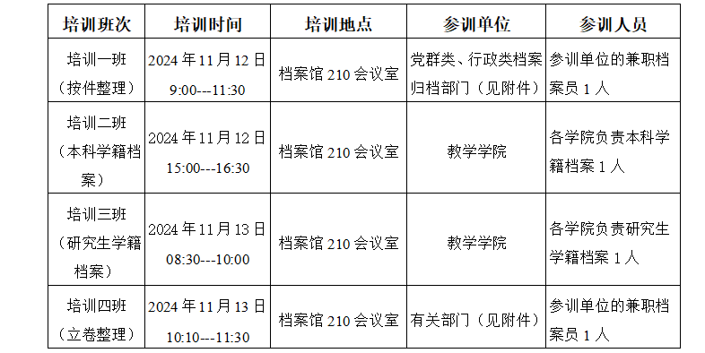 2、培訓班實行線下培訓,現場簽到。培訓情況作為學校對各單位檔案工作的考核內容。