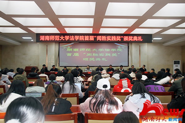 (記者 廖思茹)近日,我校在法學院205會議室舉行首屆“聞勝實踐獎”頒獎儀式。湖南聞勝律師事務所合伙人、獎學金設立者王東平,我校副校長蔣新苗出席典禮。儀式由法學院黨委書記于烽主持。