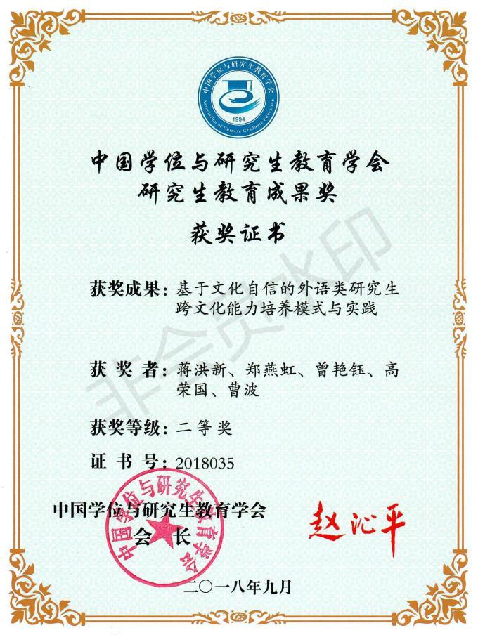 蔣洪新教授領銜的《基于文化自信的外國語類研究生跨文化能力培養模式與實踐》獲評第三屆中國學位與研究生教育學會研究生教育成果二等獎