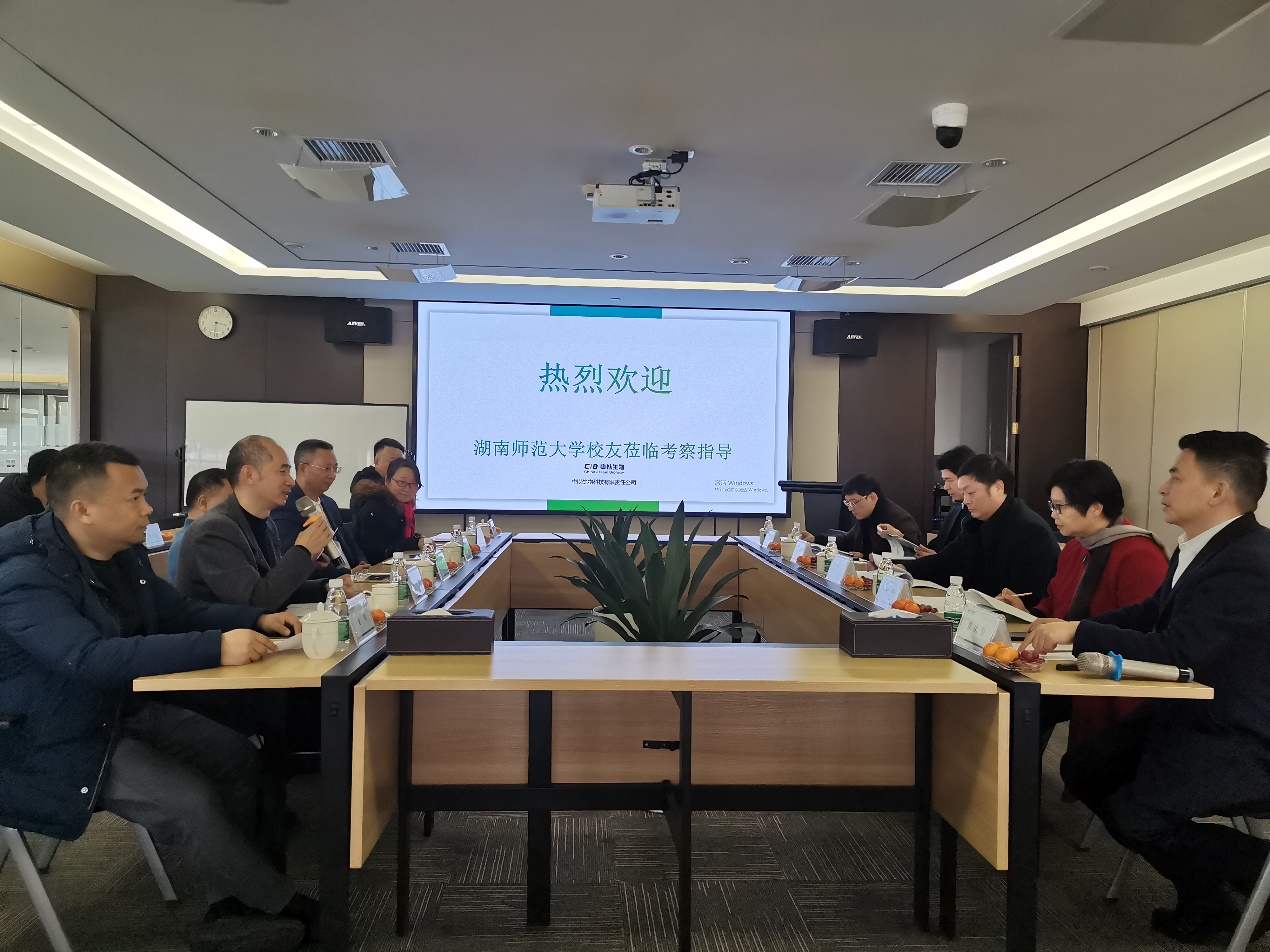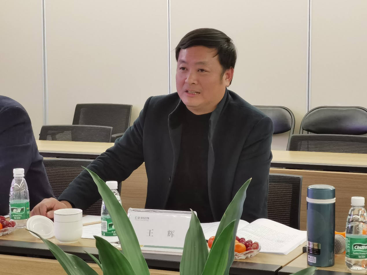 我校數統院1992級校友、中以生物科技有限責任公司總經理黃慶璽對王輝一行的到來表示歡迎。他簡要介紹了自己的工作經歷,并詳細匯報了公司的發展歷程、主要項目和業務布局等情況。