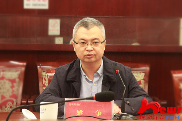 唐賢清對姚爭一行的到來表示熱烈歡迎,并從文化底蘊、學科實力和辦學特色三個方面簡要介紹了我校基本情況。他表示,在“雙一流”建設背景下,我校不斷加強自身建設,堅持教師教育、基礎教育等特色辦學,在人才培育、學科建設、師資隊伍建設等方面取得了顯著成果。