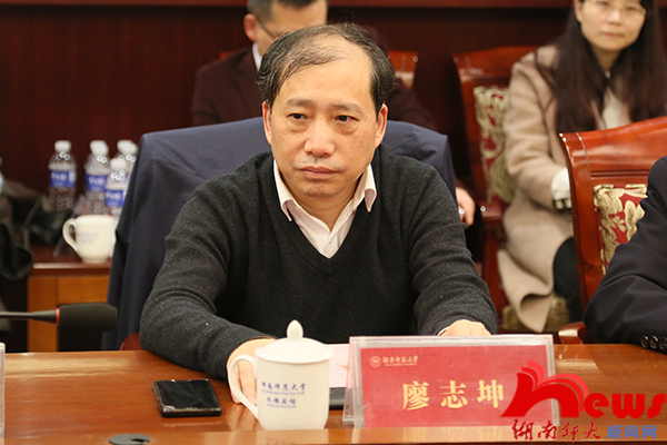 廖志坤對我校的熱情接待表示感謝,他向大家簡要介紹了吉首大學的基本情況和兩校的合作發展淵源。他希望通過此次交流,學習我校在學科建設、人才培養、資源轉化等方面的優秀經驗,解決學校發展中遇到的問題,并不斷加強與我校的溝通合作,加深兩校友誼,攜手共同進步。