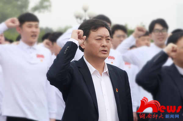 (記者 馬鐵泉 彭璐)4月29日上午,“青春向黨 逐夢瀟湘”湖南省大學(xué)生集體入黨宣誓活動(dòng)在長沙市橘子洲頭、花垣縣十八洞村、汝城縣沙洲村、湘潭大學(xué)毛澤東雕像廣場等地同步舉行。我校200名學(xué)生新黨員代表同其他四所高校新黨員一起在橘子洲頭參加宣誓活動(dòng),省委教育工委副書記、省教育廳黨組成員王建華領(lǐng)誓,我校黨委委員、副校長王輝帶領(lǐng)學(xué)生黨員參加宣誓活動(dòng)。