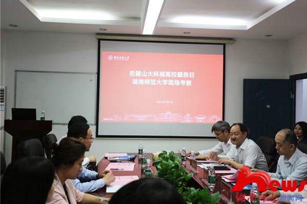(記者 傅欣怡 汪瑤)5月7日上午,岳麓山大科城管委會黨工委書記、岳麓區委副書記劉亮,岳麓山大科城管委會主任羅予武一行來校開展高校服務日活動,副校長楊震出席,活動由我校資產公司總經理、大科城辦公室主任蔡炳華主持。