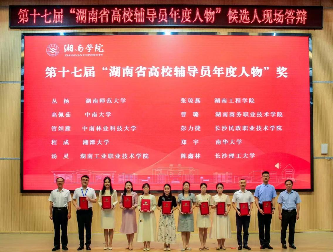 (供稿 學工部)6月26日,由湖南省教育廳主辦、湖南出版投資控股集團協辦、湘南學院承辦的湖南省學校思想政治教育獎勵基金成立儀式暨第十七屆“湖南省高校輔導員年度人物”候選人現場答辯活動在湘南學院舉行。我校文學院輔導員叢楊以答辯總分第一的成績榮獲2025年“湖南省學校思政教育獎勵基金年度影響力人物”榮譽稱號。