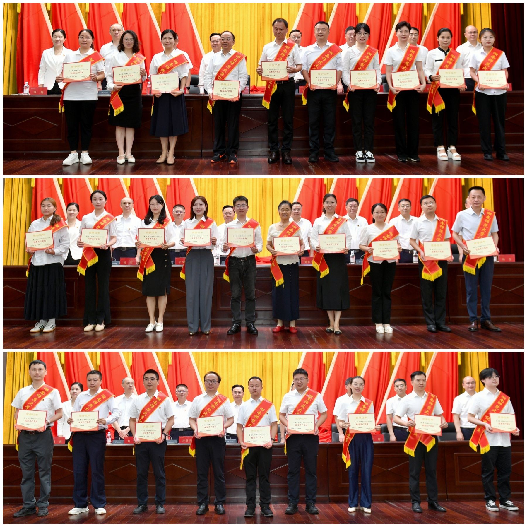 獲得“光榮在黨50年”紀念章的老黨員代表,獲獎個人和獲獎單位代表,各二級黨組織書記、副書記、組織人事秘書,各二級單位主要負責人,師生黨員代表等參加大會。