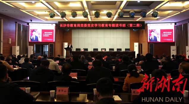 科教新報·新湖南客戶端訊(通訊員 霍烈)為深入推動全市教育系統黨史學習教育,4月15日,長沙市教育局黨委第二期黨史學習教育專題讀書班開講。此次活動也是長沙市“學四史、守初心、擔使命”黨員教育專題活動暨送黨課進基層教育系統專場。