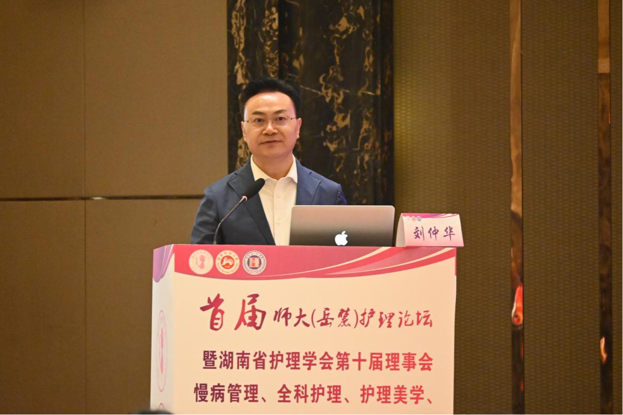 (供稿 護理學院)11月15日,我校護理學院成立揭牌儀式暨師大首屆(岳麓)護理論壇暨湖南省護理學會第十屆理事會慢病管理、全科護理、護理美學、護理倫理、門診專業委員會成立開幕式在長沙舉行。教育部高等學校護理學類專業教學指導委員會秘書長孫宏玉、湖南省衛生健康委副主任程博、湖南省護理學會常務副理事長曾清、湖南省人民醫院黨委書記趙衛華、常德職院院長周華、我校校長劉仲華出席活動。大會由湖南省人民醫院副院長李亞敏主持。