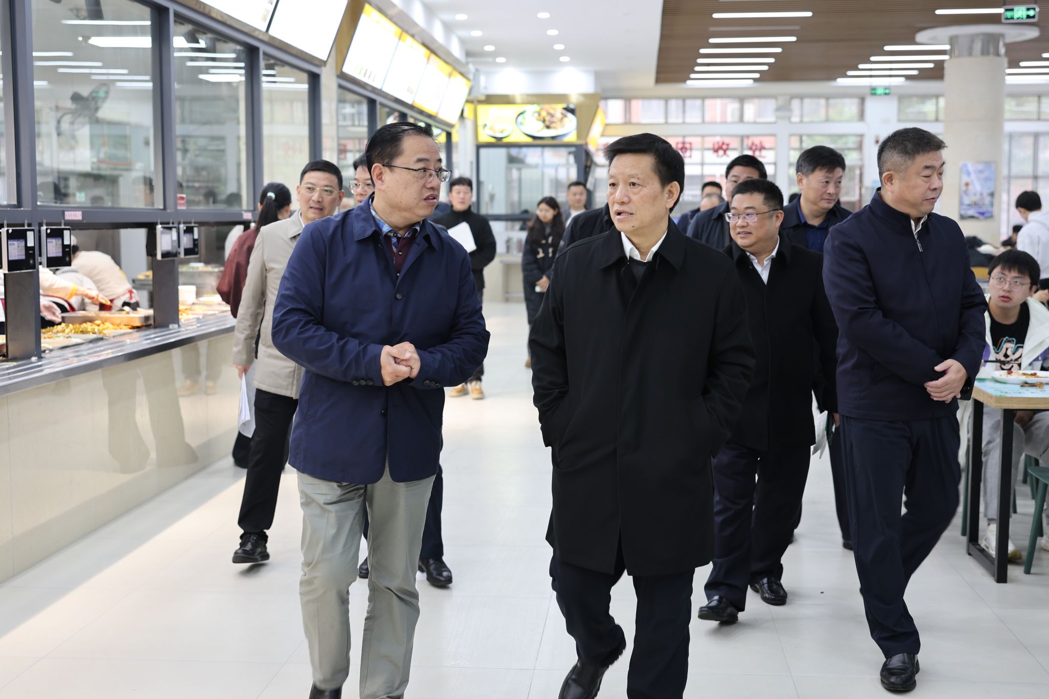 蔣洪新前往學生食堂、應急指揮中心等地調研校園安全工作,并認真聽取了各相關負責人的工作匯報。