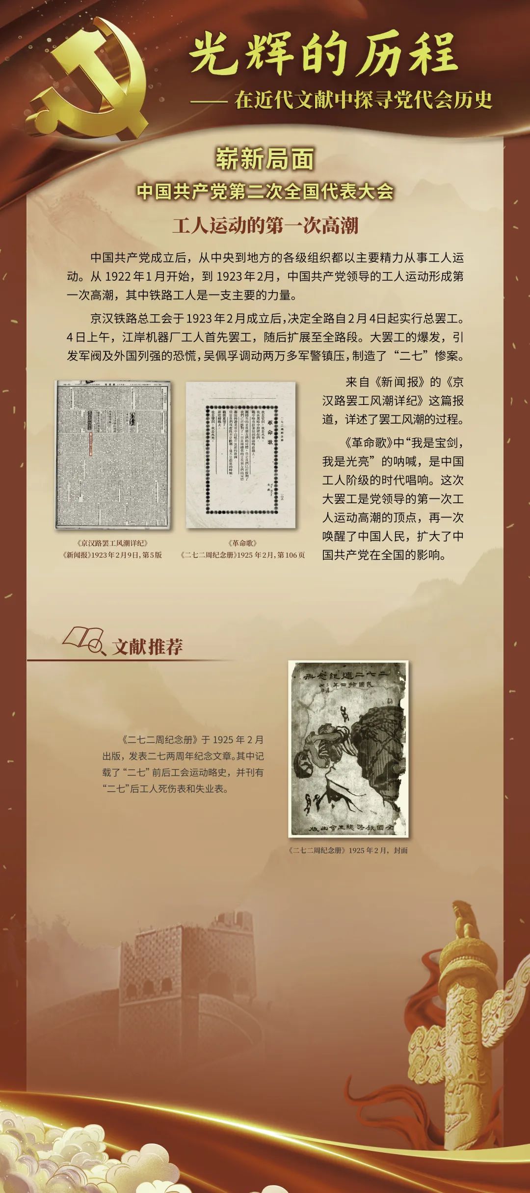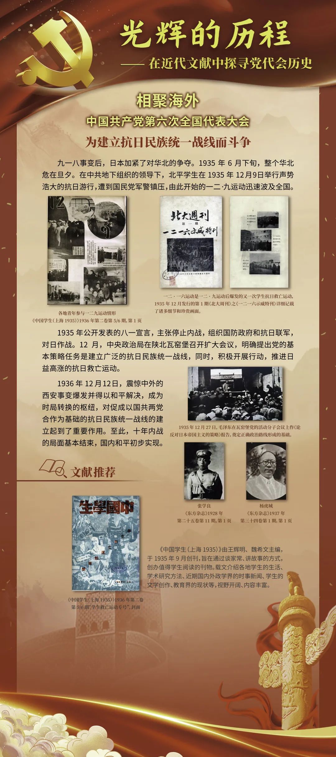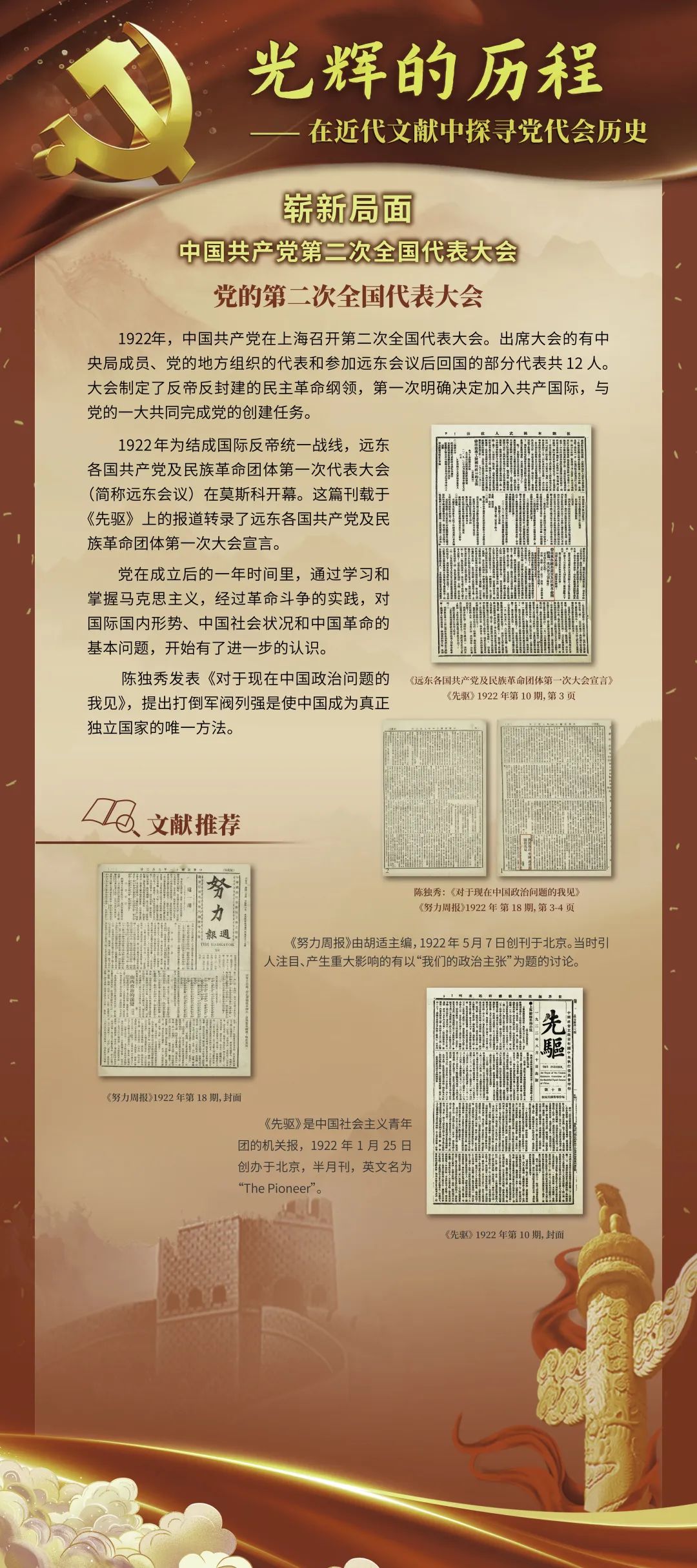 為迎接黨的二十大勝利召開,圖書館聯(lián)合《全國報刊索引》編輯部共同推出“光輝的歷程——在近代文獻中探尋黨代會歷史”展覽,通過展覽回顧中共一大至七大的光輝歷程,在近代文獻中探尋和展示黨在新民主主義革命時期的奮斗成就與經(jīng)驗。用歷史映照現(xiàn)實,遠觀未來,在新的征程上更加堅定、更加自覺地牢記初心使命、開創(chuàng)美好未來。