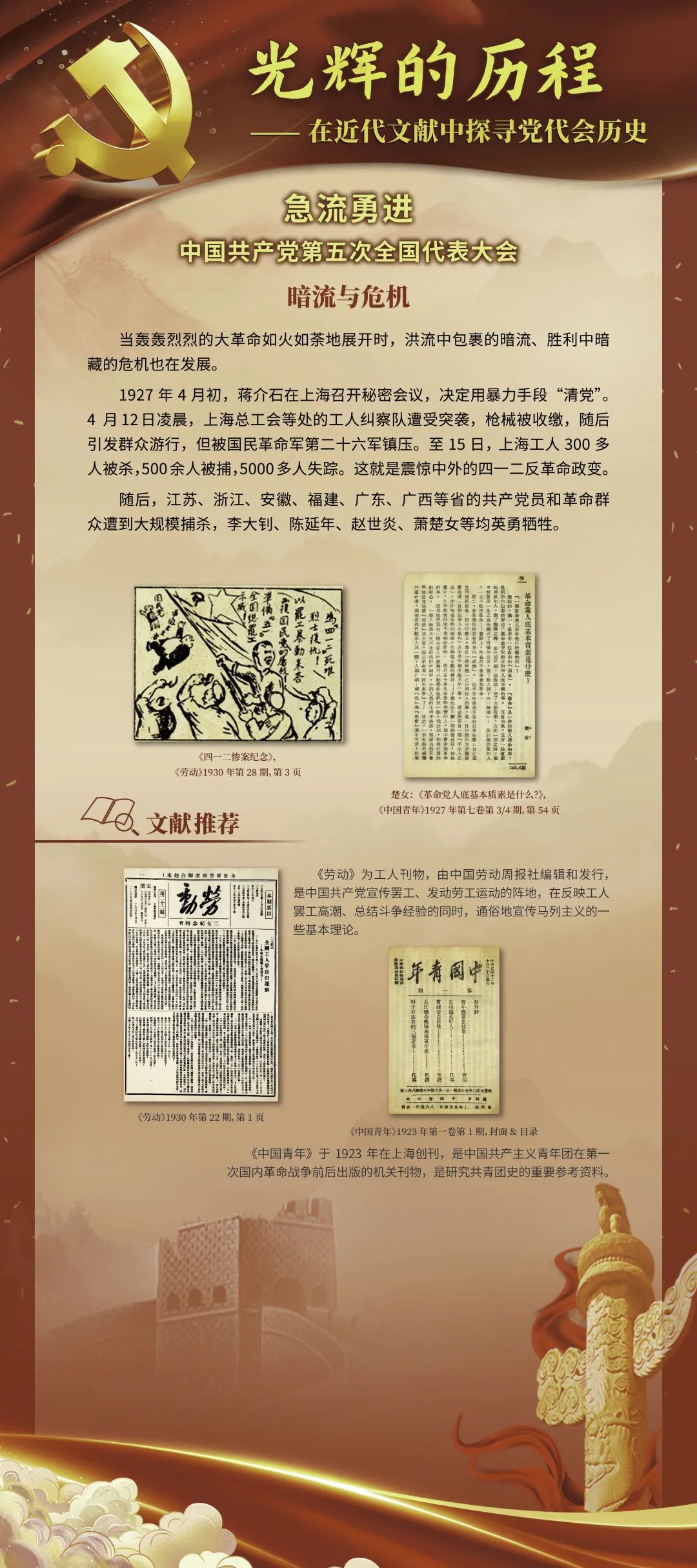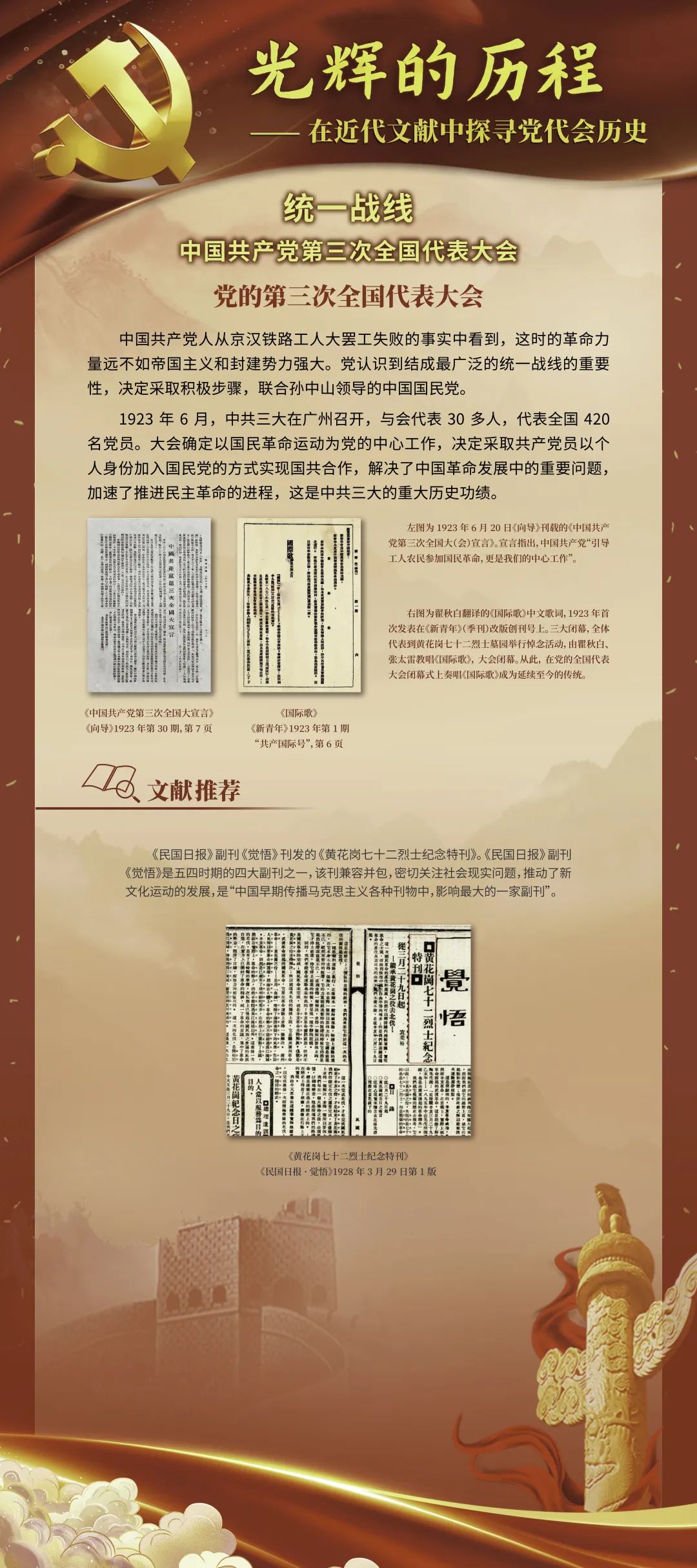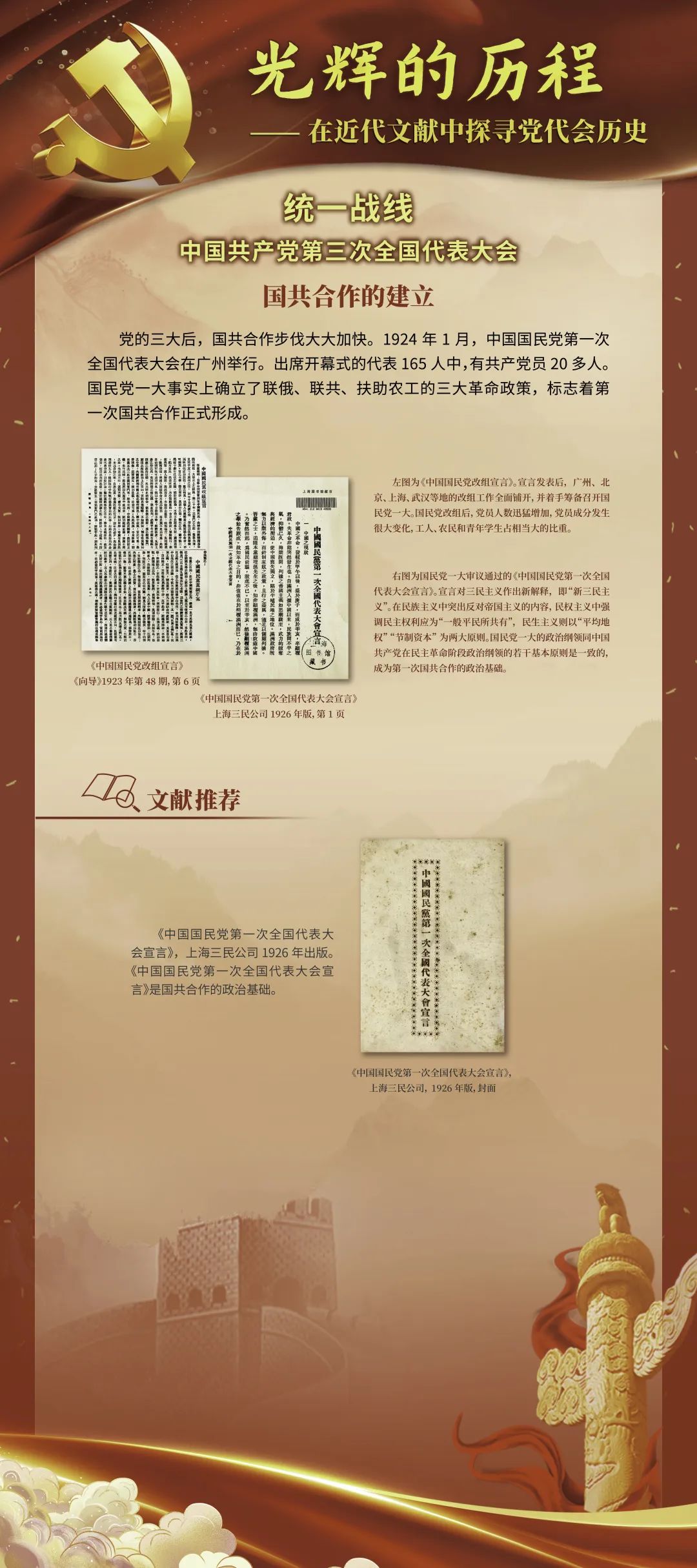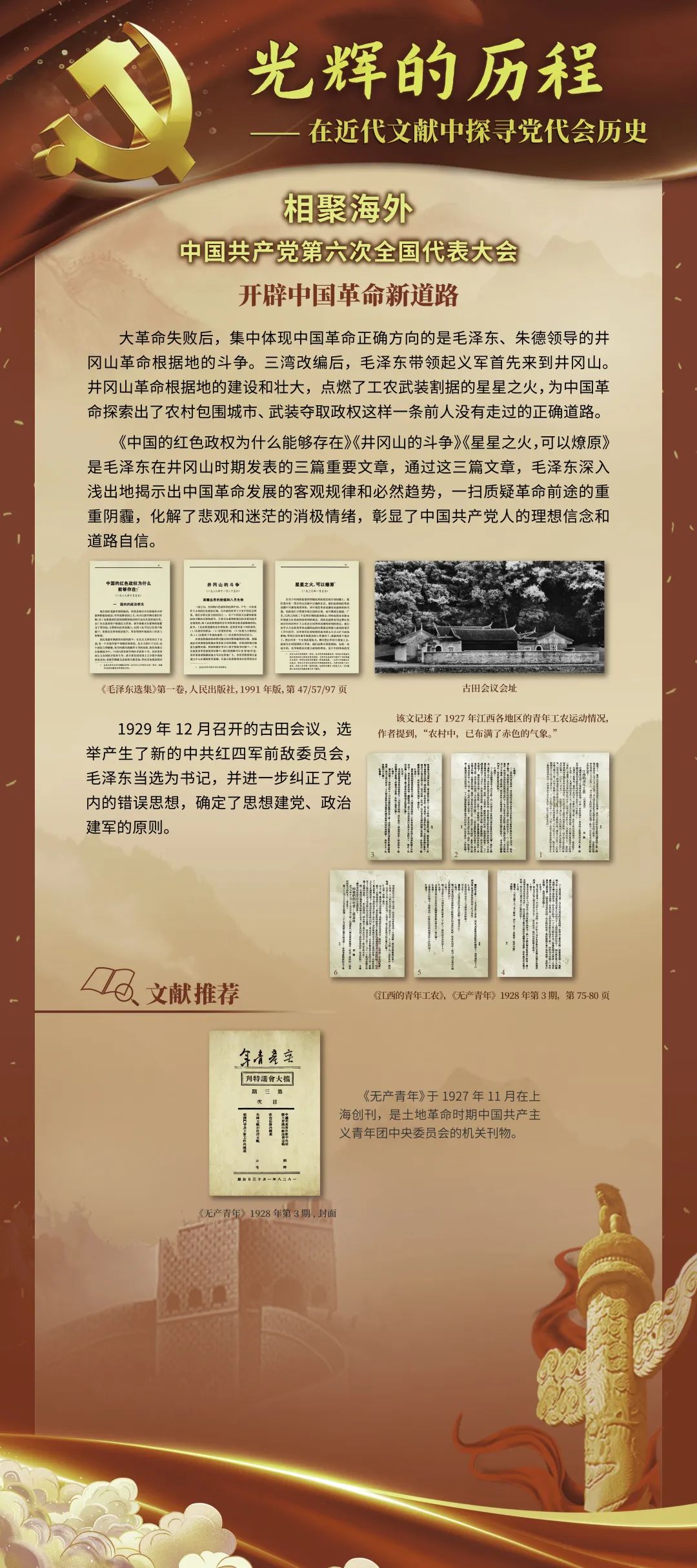 為迎接黨的二十大勝利召開,圖書館聯(lián)合《全國報刊索引》編輯部共同推出“光輝的歷程——在近代文獻中探尋黨代會歷史”展覽,通過展覽回顧中共一大至七大的光輝歷程,在近代文獻中探尋和展示黨在新民主主義革命時期的奮斗成就與經(jīng)驗。用歷史映照現(xiàn)實,遠觀未來,在新的征程上更加堅定、更加自覺地牢記初心使命、開創(chuàng)美好未來。