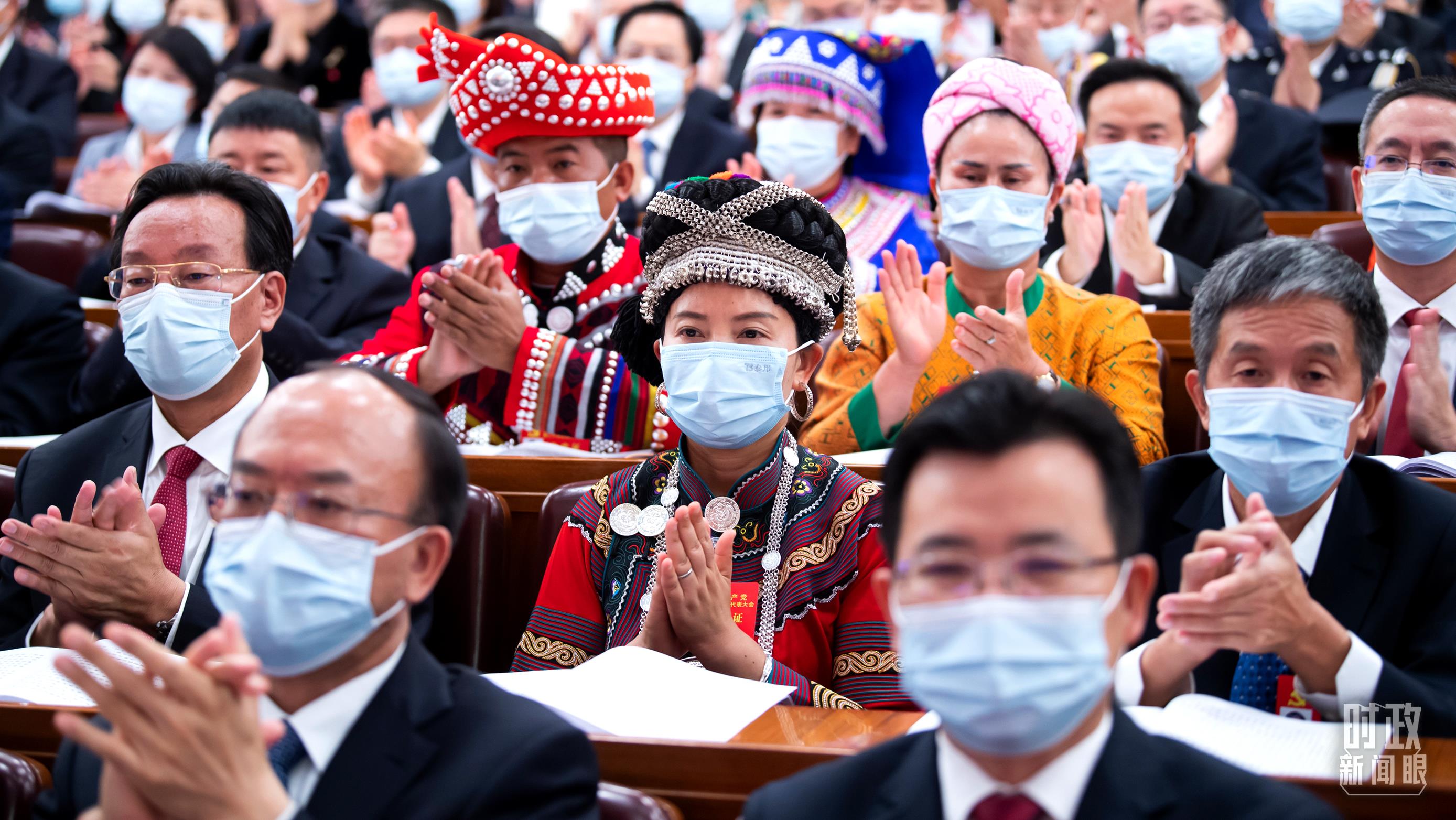 迎著現場2300多名代表和特邀代表的殷切目光,總書記作了題為《高舉中國特色社會主義偉大旗幟 為全面建設社會主義現代化國家而團結奮斗》的報告。