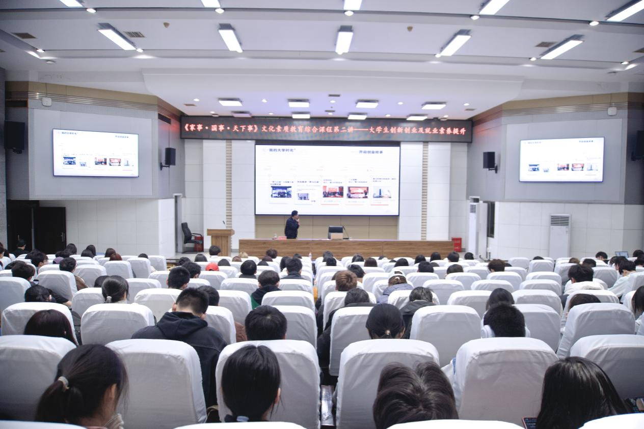 (通訊員 武雪喬 孫嘉益 鐘婷婷)3月20日晚,我校《家事·國事·天下事》文化素質綜合課程第二講在至善講堂開展。此次課程由我校2012級校友,現任黑馬科教控股集團(湖南)有限公司董事長、教育部中國國際創新大賽國賽評委胡含兵主講,校學生會主席團成員馬旭琪主持。